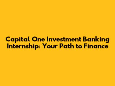 Hey guys! So you're eyeing that Capital One Investment Banking Internship, huh? Awesome choice! Landing an internship in investment banking is like getting a golden ticket to the world of finance. But let's be real, it’s competitive. This guide will give you the lowdown on what it takes to snag that coveted spot at Capital One. We'll dive into what the internship entails, how to prepare, and what you can expect from the experience. Get ready to level up your career game!
