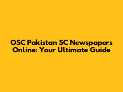 OSC Pakistan SC Newspapers Online: Your Ultimate Guide