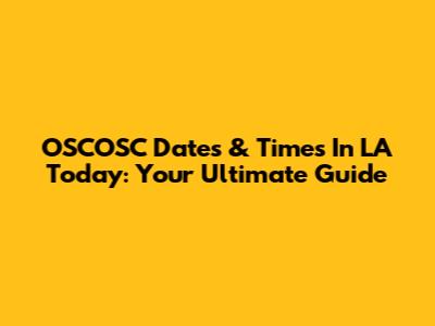 OSCOSC Dates & Times In LA Today: Your Ultimate Guide
