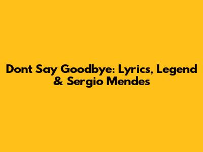 Don't Say Goodbye: Lyrics, Legend & Sergio Mendes