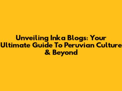 Unveiling Inka Blogs: Your Ultimate Guide To Peruvian Culture & Beyond