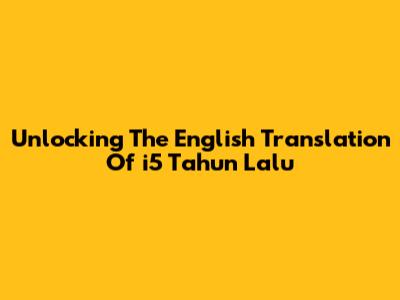 Unlocking The English Translation Of 'i5 Tahun Lalu'