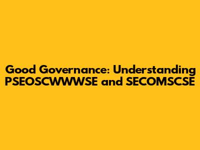 Good Governance: Understanding PSEOSCWWWSE And SECOMSCSE