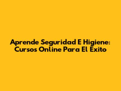 Aprende Seguridad E Higiene: Cursos Online Para El Éxito