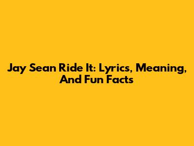 Jay Sean Ride It: Lyrics, Meaning, And Fun Facts