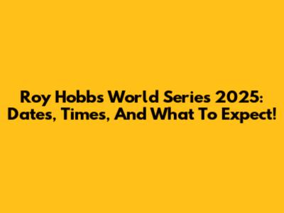 Roy Hobbs World Series 2025: Dates, Times, And What To Expect!