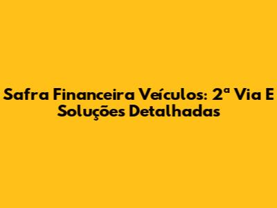 Safra Financeira Veículos: 2ª Via E Soluções Detalhadas