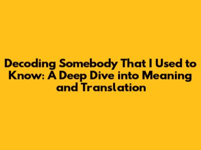 Hey guys! Ever found yourself utterly captivated by a song? Like, you just have to understand every single lyric? Well, that's how a lot of us feel about "Somebody That I Used to Know" by Gotye featuring Kimbra. It's a song that's been around for a while, but its emotional depth and relatable themes continue to resonate with listeners across the globe. Today, we're going to dive headfirst into this chart-topping hit, exploring its meaning, dissecting the lyrics, and, of course, giving you the lowdown on the terjemahan somebody that i used to know – that is, the translation! Get ready to unravel the story of lost love, regret, and the bittersweet sting of remembering someone you once knew intimately.